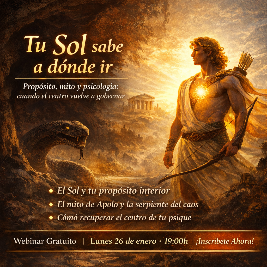 Accede a este webinar gratuito y descubre cómo el arquetipo solar de Apolo revela el lugar de tu psique donde habita el propósito, la dirección y el sentido vital.